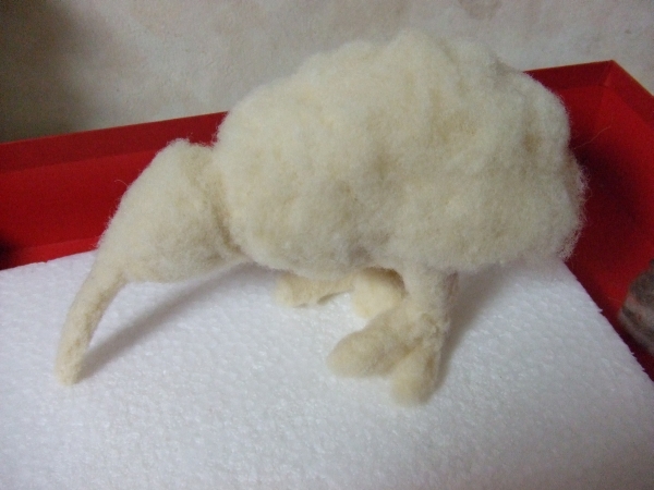 別に何をガードするわけでもないですけど今回の主題がウールなことはウールです。 羊毛フェルトで制作中のキーウィ。 …なんでキーウィだよ!! 具体的に言いますと哺乳類でも爬虫類でも食いモンでもなんでも良かったんですがね、その時たまたま見かけた羊毛フェルトの創作でインコやらフクロウやらトリじみてましてですね、まあ鳥類も嫌いじゃないもんでトリもいいかなーと思ったところでカラスやスズメなんぞは大して物珍しくもないしツルやサギはクビが折れると嫌だし、それじゃー珍しいところでしかも丸っこいナニモノかは無いかーと探した結果⇒キーウィ。メジロとかウグイスとかカワセミとかもっとメジャーとマイナーの中間はなかったのか自分。キーウィってチョコレート色一色だし配色大して面白くないぞ自分。気づけよ自分。 まあそんな紆余曲折あっても結局は作っちまうわけですがね。キーウィかわいいよキーウィ。 バランスが若干難しいですが足が太けりゃ何とか立つんじゃないかと思ってます。 自分は器用さにマイナス補正かかってるもんで、いつできあがるかコレガワカラナイ CL海賊あたりにクラスチェンジできないもんですかね… 世間では金の週間ですが、自分は29日から