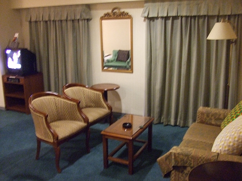 ちょっとじゃないですね。 まぁそういう感じに出掛けてきたわけですけど目的は観光じゃなくて手伝いっていう。大した手伝いもできずにまた動体視力カメラマンしてましたが。 泊まりがけで旅行するとなるとさすがに色々ありましたが、とりあえず泊まったホテルが凄かったもんでちょっと紹介。 今回の宿は「ホテルリッチフィールド○○」っていうホテルでした。○○には適当な地名をどうぞ。多分同じ系列だからわざわざ行き先まで言わない。 何だか名前からして既にリッチですが別に死神が出てきたりリチャード・ナイツがいたりするっていうファンタジーではなく、単に高級な方のリッチ。高級な/死神/リッチ・ナイツと3種類もリッチ知ってると高級な方のリッチって言われてあーと思うのは自分だけですかそうですか。最近サガフロ2をやっていないこともついでに思い出したけどどっちみち潜入アレクセイで毎度積むので再開はやめた。 そんなリッチフィールド、中はどんな感じにリッチかといいますと、こんな感じでした。 応接セットあるでやんの。 応接セットのクッションがふかふかでお持ち帰りしたかったけどさすがに犯罪行為になるのでやめた次第。歯ブラシとかタオルとかそういう消耗品持って帰るのとはわけが違いすぎるもので。当たり前ですね。 画面に入りきりませんでしたが左の方にベッドがあります。超広いです。 普段の居場所が4畳半な林香さんにはこの部屋が一体何畳なのか皆目見当もつきませんでした。普段の居場所と対比したら30畳ぐらいありそうな感覚だったけど30畳は広すぎる気もしないでもなかったです。どっちだよ。 ともかく広すぎる部屋に応接セット(クッションふかふか)と鏡台(鏡までが遠くて立ち上がるかメガネかけないと自分の顔が見えんのですが)とベッド2台(枕2基にクッション1個付いてくる優遇っぷり)とロッキングチェア(がくんがくん揺れて面白かったが揺らしすぎて鏡台の角にぶつかった馬鹿)とテレビ(ロッキングチェアから遠すぎてメガネ掛けないと見えない上にデジタルの癖して実機のアス比が4:3なので端が切れて見えん。朝時間見たら時刻が全部見えなくて不便極まりない)、あとユニットバス(カーテン短くて閉まりきらない上にシャワーを水とお湯でうまく水温調節しても時々熱くなったり冷たくなったりする程度)あるとかまぁカッコで色々喋くりながらもいっそここに住みたいんですけど。 ……ザー まぁそんな夢のような部屋に1泊して夢見てきたって話です。 一泊何円だったかって?自分は連れられて行ってきたものでそこは一切関与してないですよ。ただ多分すごい高い。 あんまりに暑いもので、水族館に涼みに行きましたよっと。