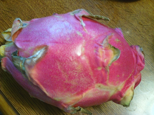 いちいち太字にでもしないとそろそろ死亡確認!とか言われそうで太字にしてみたがよく考えたら王さんの死亡確認!は生存フラグだったっていう罠。 さて盆です。 盆って言っても我が職場には盆なんてないです。 盆?何それ覆水戻ってこないよ?っていうレベルで盆なんて知らんです。 今年は今日がぎりぎりだったんでよかったですが来年は休めないですね。盆に休めないと墓参りも親戚回りもなんにもイベントできないんでせいぜい夜に送り火とか迎え火焚いて花火する程度だと思うんですがこの職場最悪夜中の2時終業とかあったりするんでそれすらできなかったりする可能性ありますね。 盆に休めないのが不便とは大して思わないですがホトケ様に若干申し訳ない感じですね。 盆に休めない分は後日に夏季休暇が5日程度あるという話を聞いたんですがその5日のうち1日は日曜でもともと休みでその上この企業は週休2日なもんでまあ見積もって夏休みは3日ですね。使役しすぎだろ常考…。 この調子だと冬休みは正月3日まででしかもそのうち1日は日曜とかいう悪夢が押し寄せると思ったら来年の元旦が日曜ですね。代休くれよ。 いいえ竜的果実なんかじゃねえです。 もうしばらくドラゴンフルーツはいいとあれほど言ったんで今日は別の南国果実の話。 なんかここ北日本なんですけど南を彷彿とさせるビニールハウスがありましてですね。まあそういう所に行く機会があったわけです。 んで、そこで色々見てきたんですが写真とりすぎて収拾つかねえんでとりあえず一番身近な南国果実に話を絞ってお送りしたいと思います。 正面に見えますは一面のBA☆NA☆NA畑でございます ビニールハウスの手前から奥まで見渡す限りのバナナの木。絶景かな。 バナナって木になるモンなんですね。いや図鑑で見たことはあるけど実際見る機会ってそうないんで勉強になりました。 一本もいで食べたかったが青かったんできっとまずかったろうと。その前にこういう場所のモン勝手にもいじゃいけないって思えよ自分。 んで、こいつがBA☆NA☆NAの花。 なんかバナナっていう割にこの花の知名度恐ろしく低そうですね。 ぱっと見たらラフレシアの親戚に見えるレベルだけど悪臭放つほどのキワモノでもないんでまあ、観賞には全く向かない程度の花っていう感じの。花の価値は鑑賞に向くか向かないかっていうものに限らないけど鑑賞に向かない花っていう時点でわりと酷いこと言ってる気もする。気がするだけならタダだ。 他にも情熱的果実とか竜的果実の花らしきナニモノかとか空気植物とか巨砲とか色々あったんですけどまたの機会に。 次の記事で続きやるかどうかは不明瞭ですがね! また懲りずにドラゴンフルーツ買ってきたよこの人。 またってのは以前もこのあたりでこんな植物買ってきて食べたレポートしたわけですがまーた店頭に並んでるの見て「あー久々に食いてーなー」とか思った末にこうなった。反省はしてなかった。 まあ、買ってきたし追熟ナシの即食可能物だったため早速裁断。 若干胡麻豆腐に見えなくもないが果肉。 さて、味は。 ザー............。 …味ないってレベルじゃねーぞ! いくら薄味派だろうが許せないレベルの味の無さっていうか単純な不味さに行き場のない怒りを抱えつつも最悪ジュースにでもすりゃ飲めるかと思ってイチゴと牛乳とついでにガムシロップとともに撹拌してみたがなんかイチゴだけの方がまだマシっていうレベルのシロモノができあがって要するに青臭くて無駄にでかくて量も多い種がテラ不味い。裏ごしすりゃいけるかもと思ったもののそこまでする気力もなく「いやこれ美味しいよ」と言っていた家族に譲り渡して終了。 前のヤツはまぁまぁ美味かったからこれ自体が不味いなんてこたぁないと思うわけだがしばらくドラゴンフルーツはよくなってしまった。おっちゃん、イチゴちょうだい。 | 次のページ>>